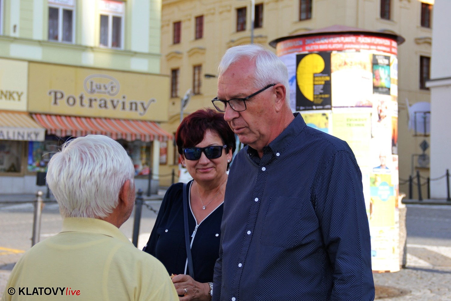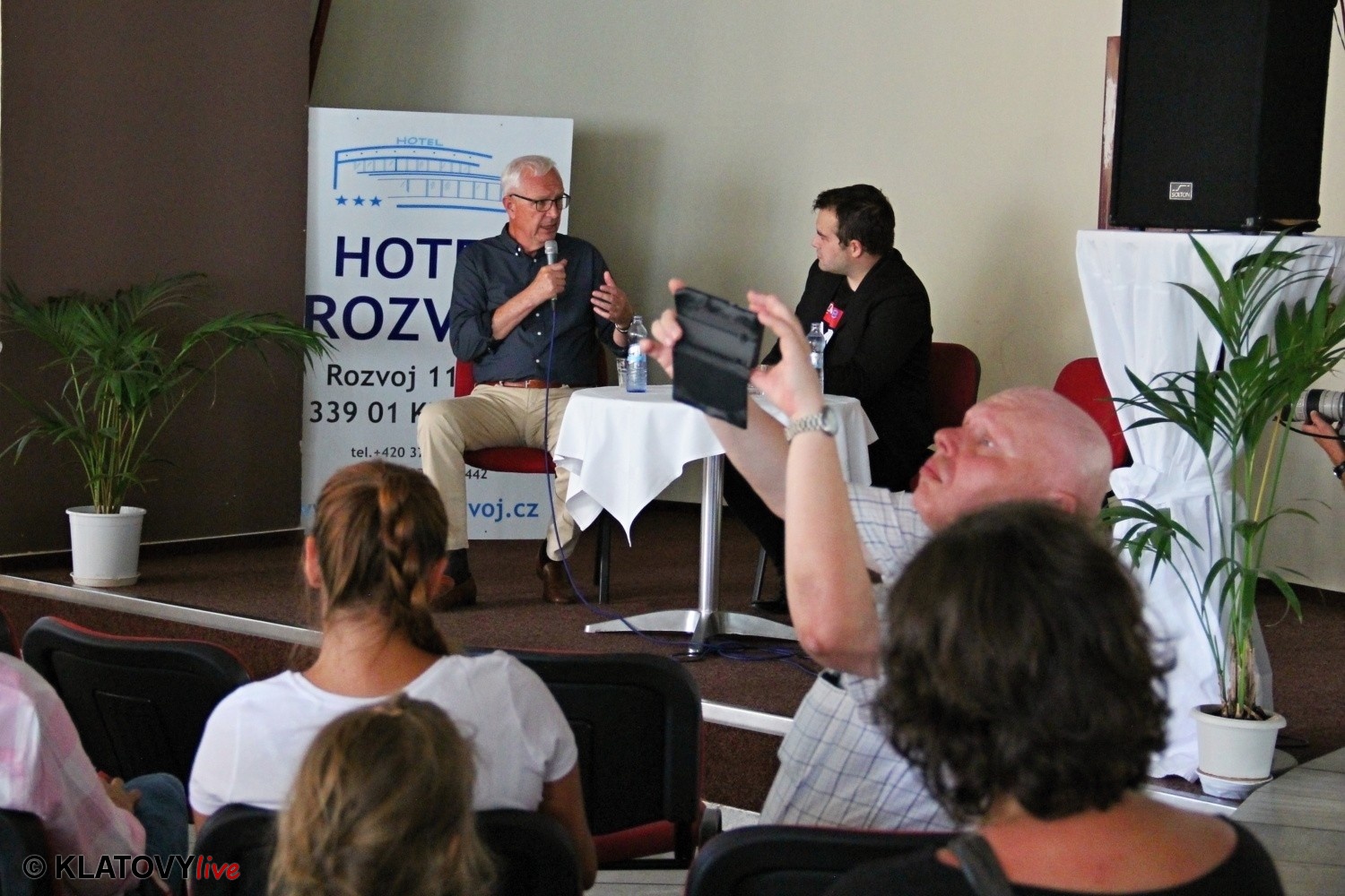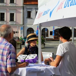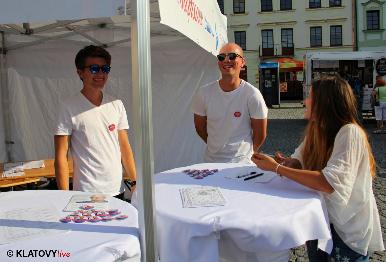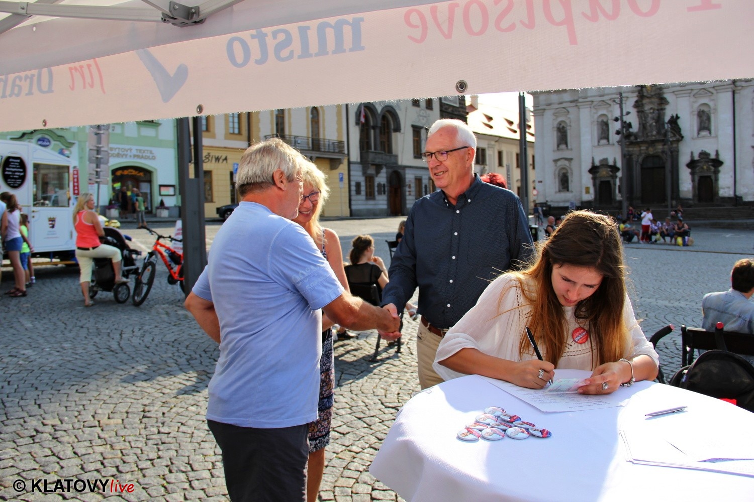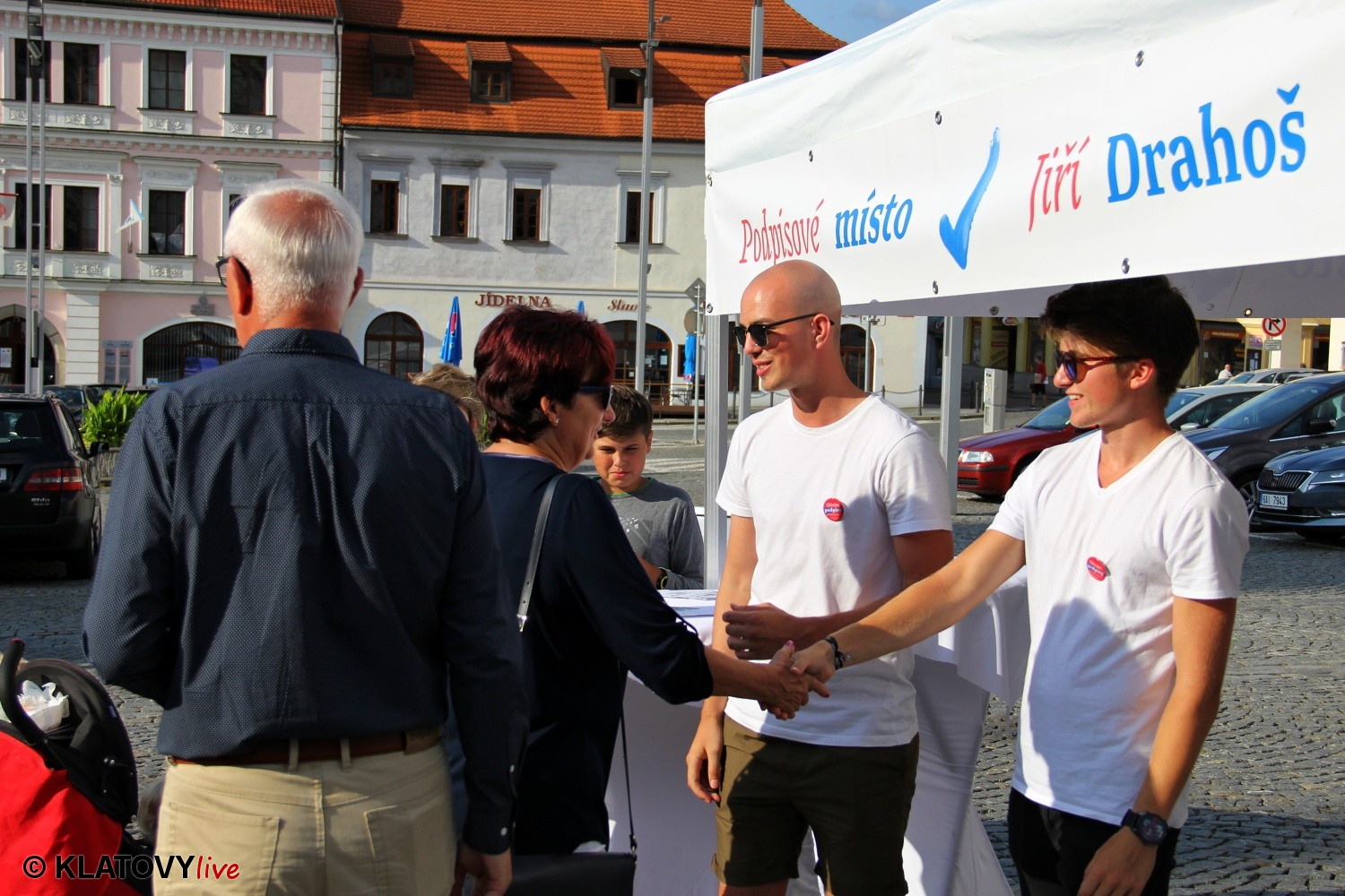 Podpisové místo pro sběr podpisů potřebných pro případnou kandidaturu na klatovském náměstí Míru a následná beseda s občany v Hotelu Rozvoj v Klatovech.