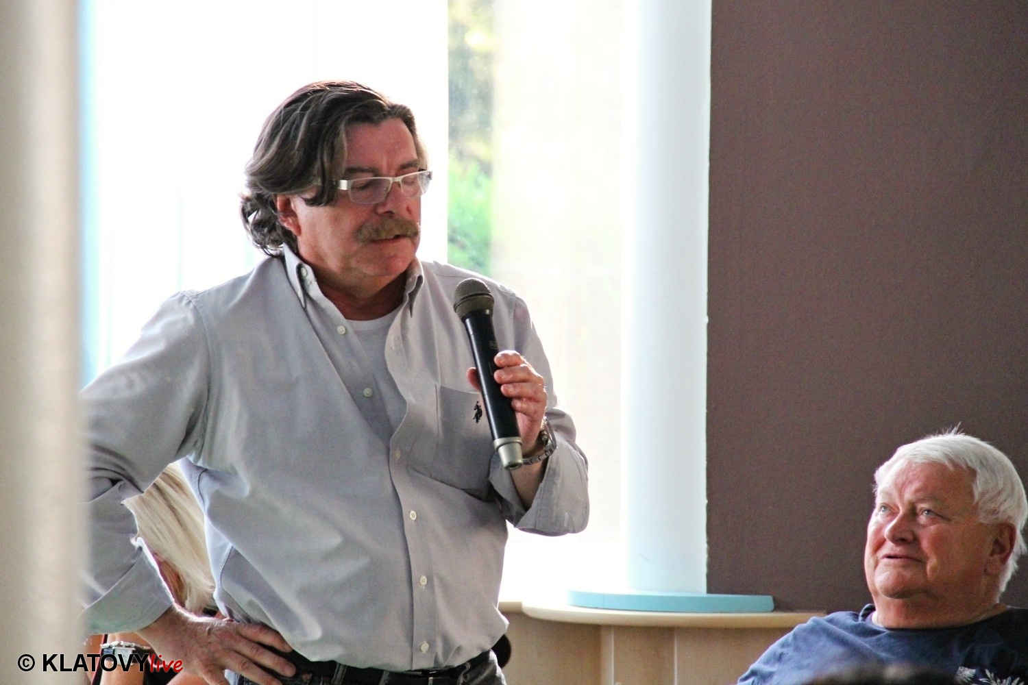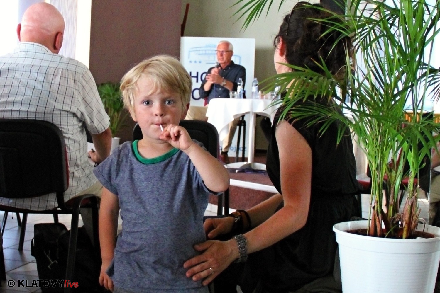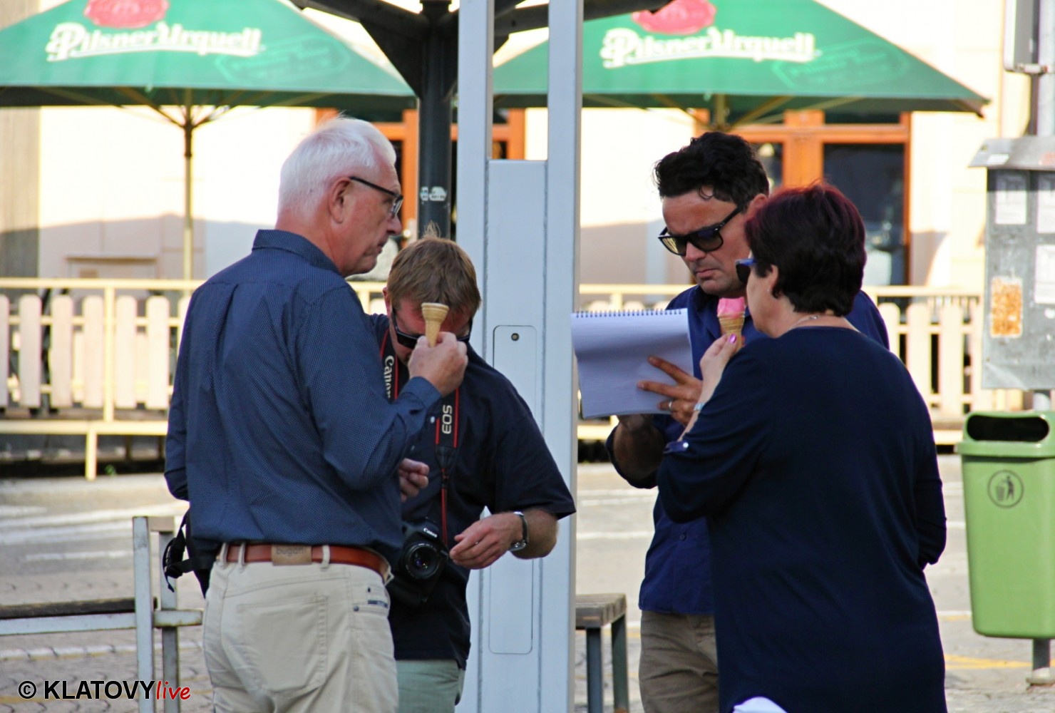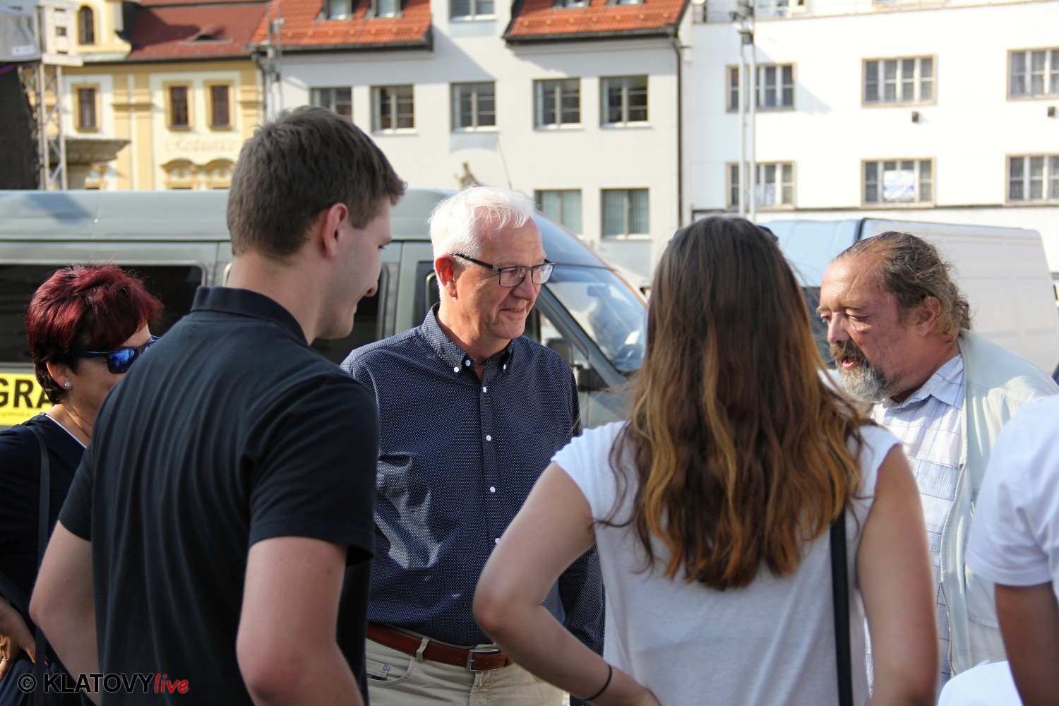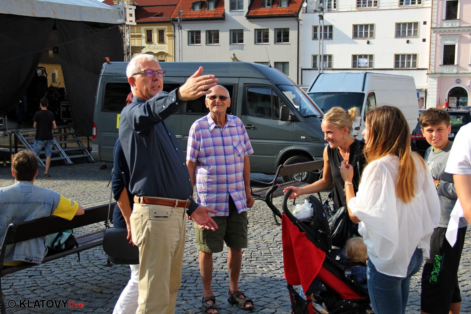 Podpisové místo pro sběr podpisů potřebných pro případnou kandidaturu na klatovském náměstí Míru a následná beseda s občany v Hotelu Rozvoj v Klatovech.