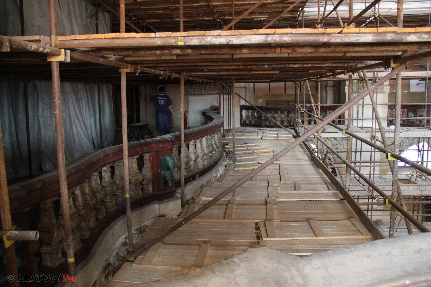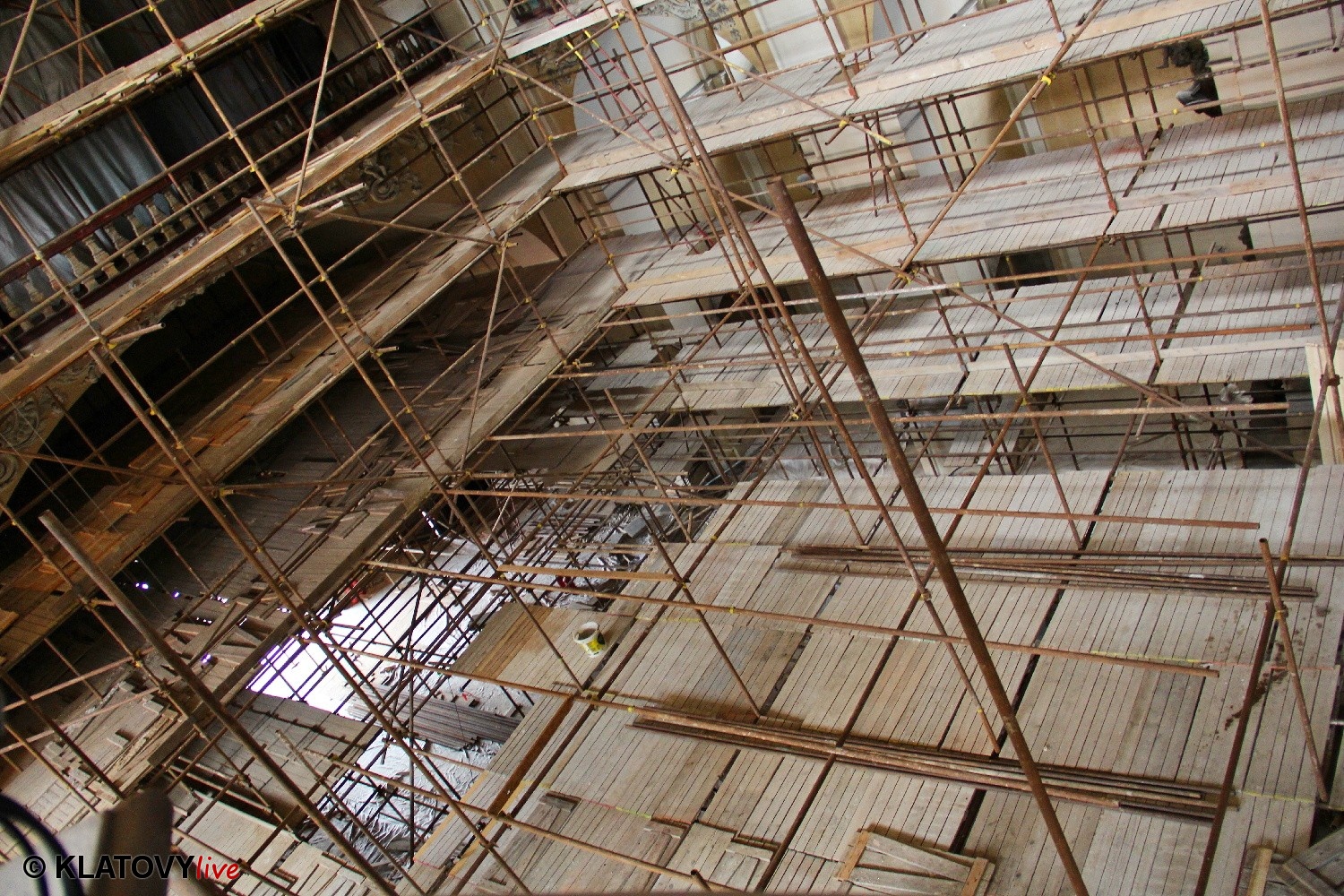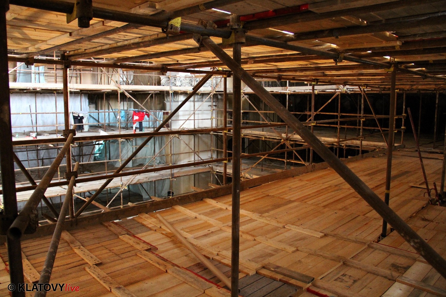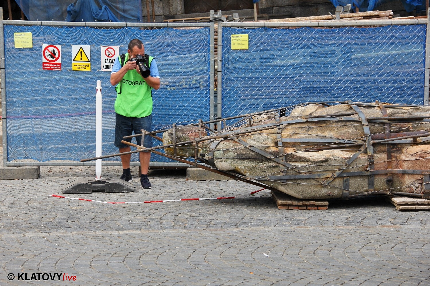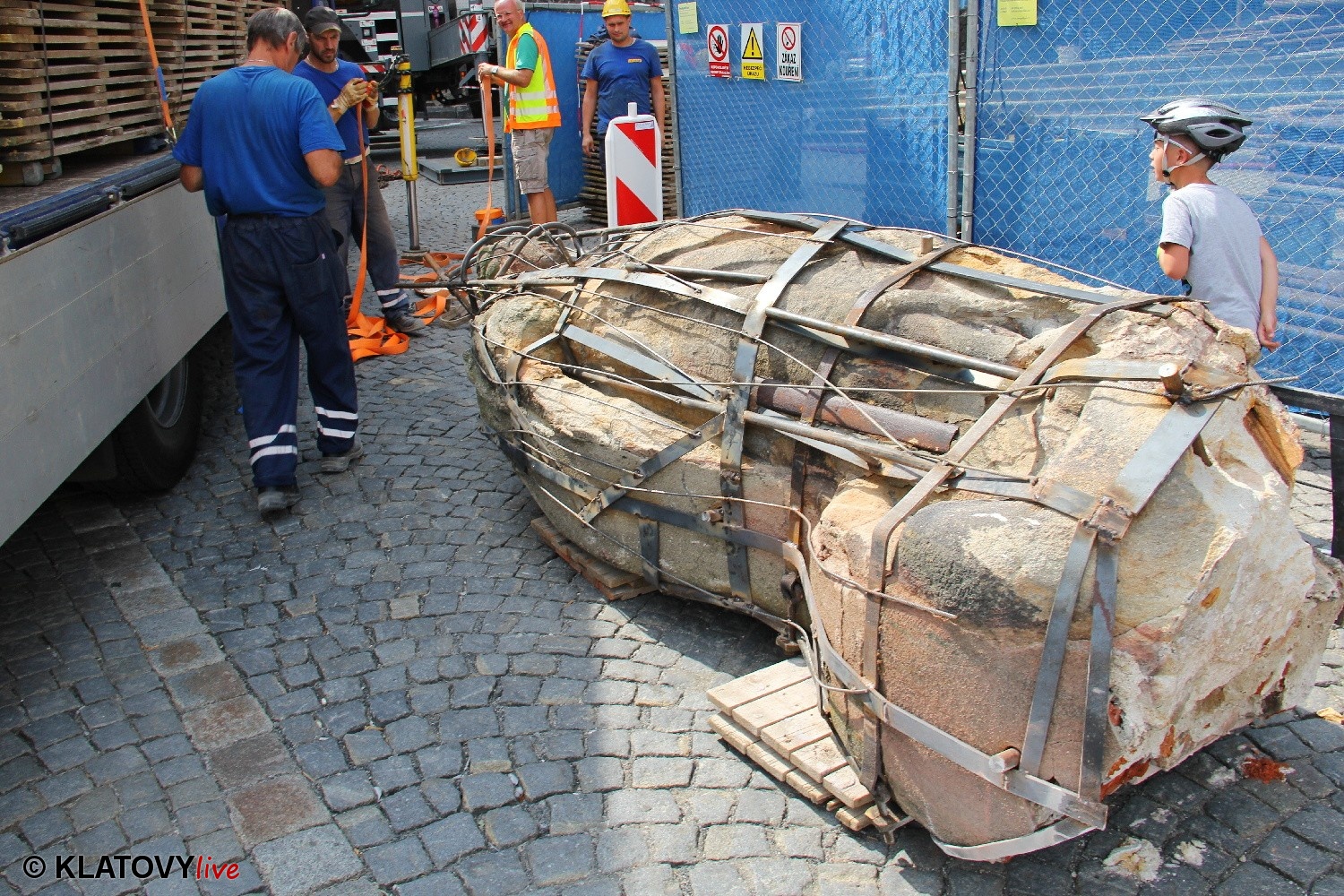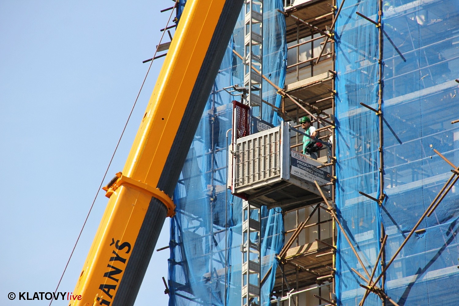 Z průčelí Jezuitského kostela na náměstí Míru v Klatovech byla snesena socha Panny Marie v rámci rekonstrukce kostela. O kompletní rekonstrukci svědčí i fotky lešení v interiéru.