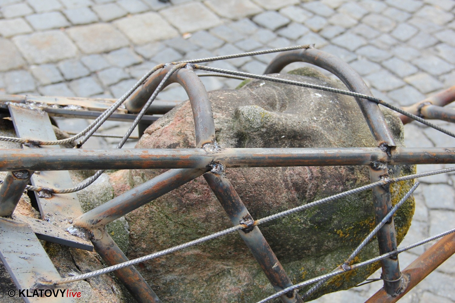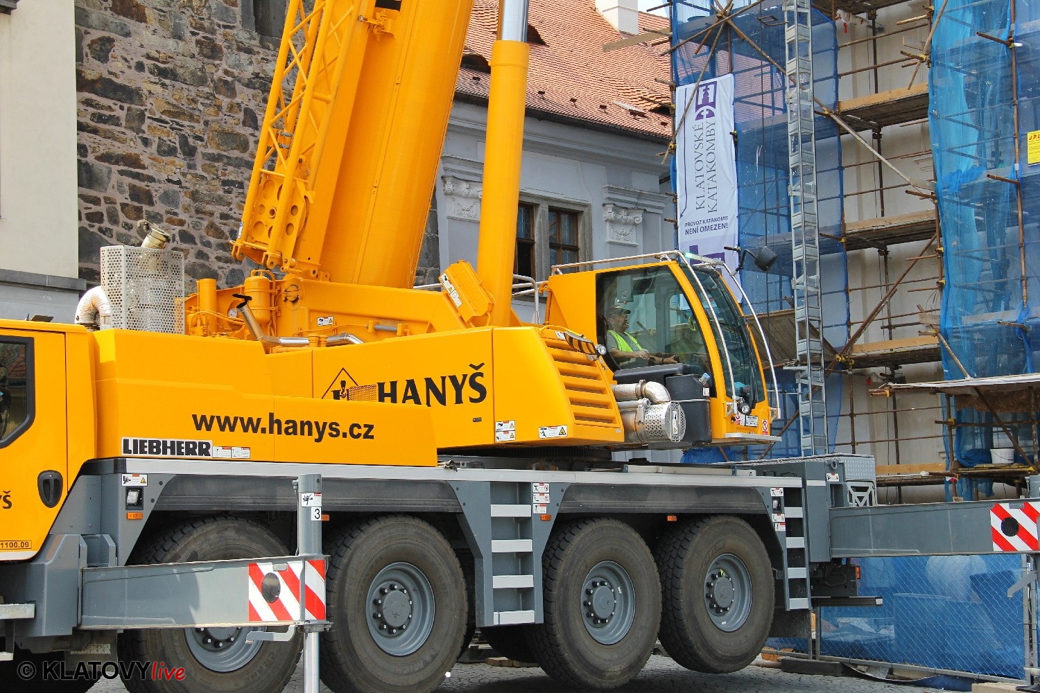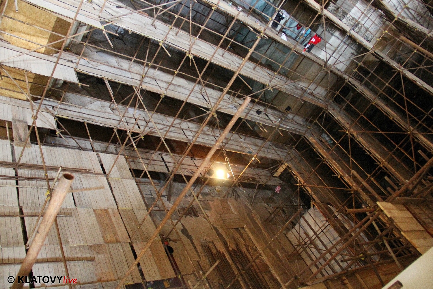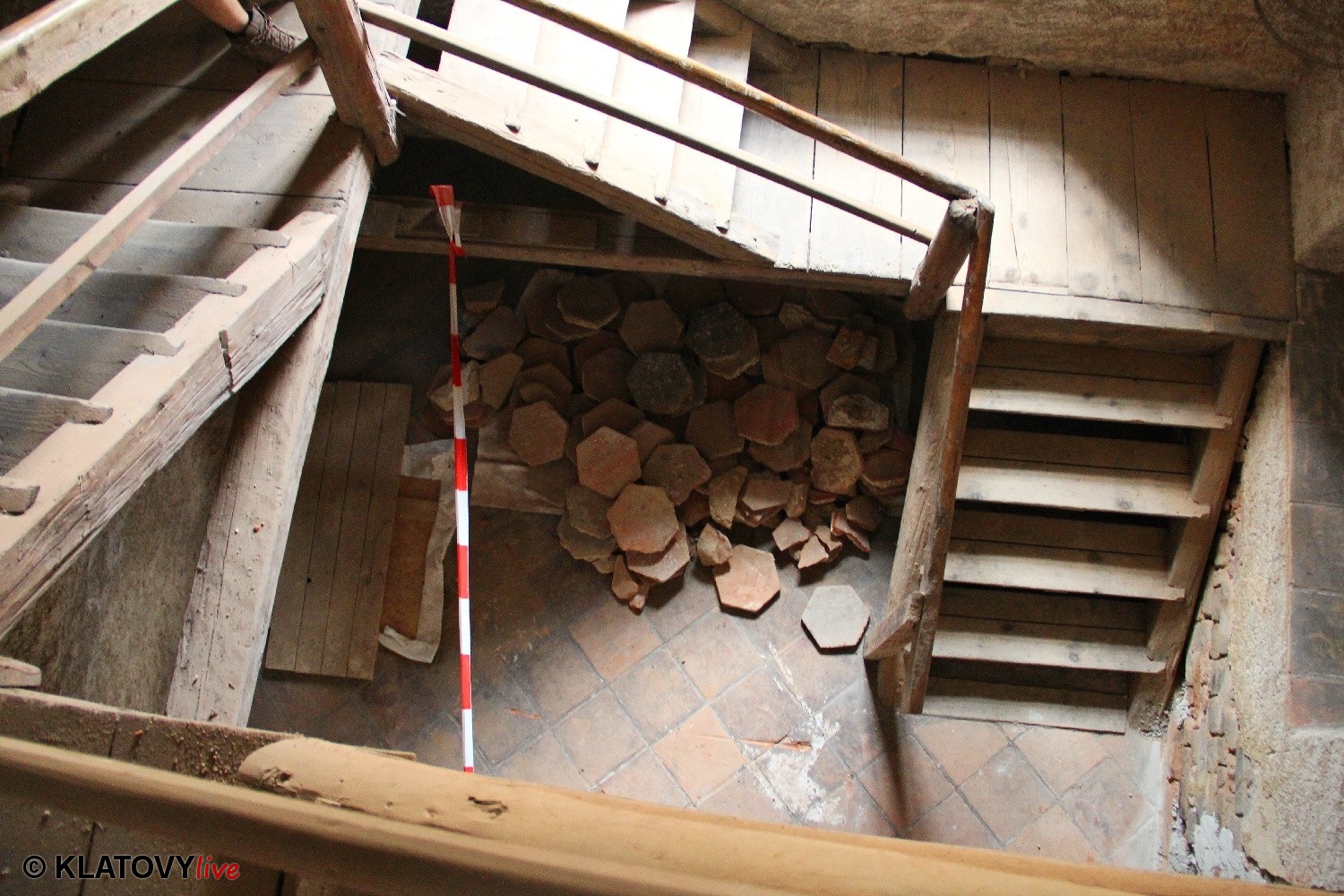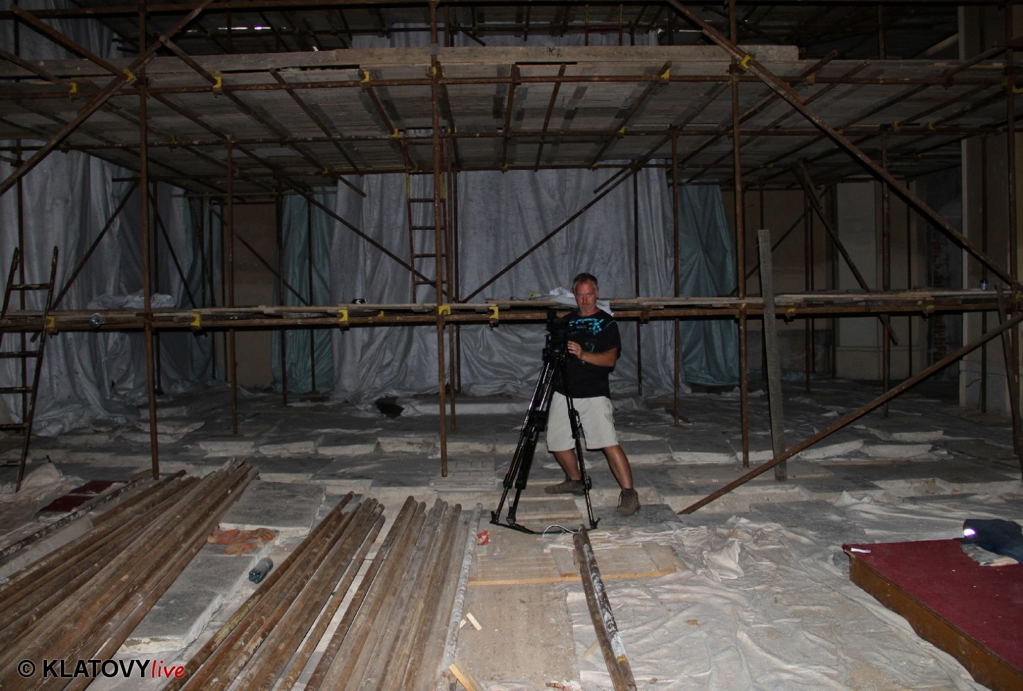 Z průčelí Jezuitského kostela na náměstí Míru v Klatovech byla snesena socha Panny Marie v rámci rekonstrukce kostela. O kompletní rekonstrukci svědčí i fotky lešení v interiéru.