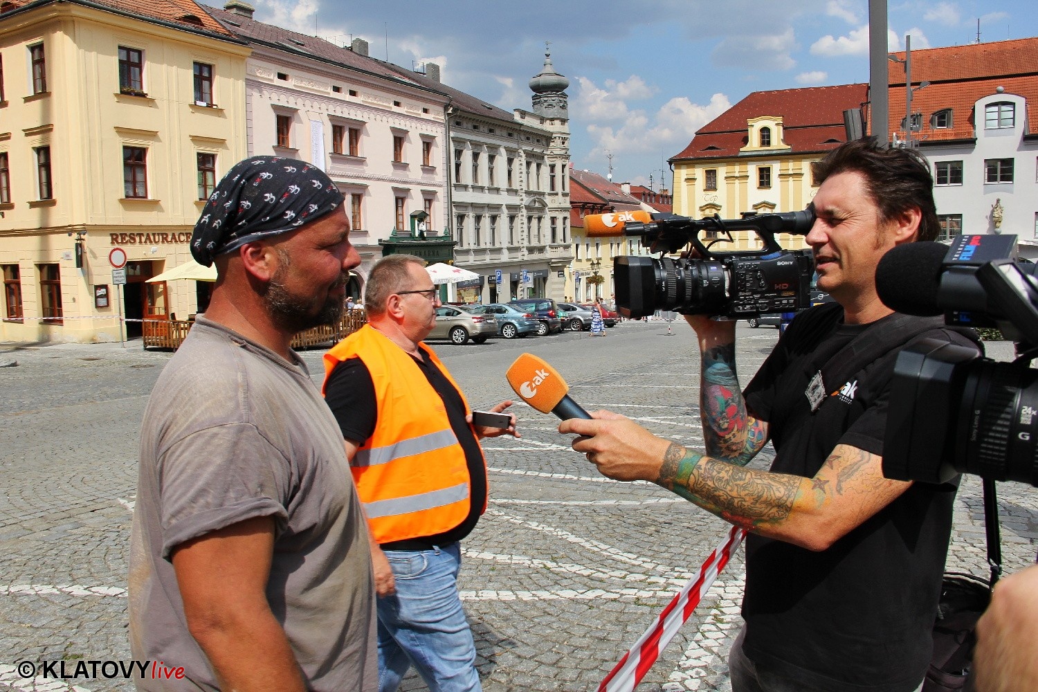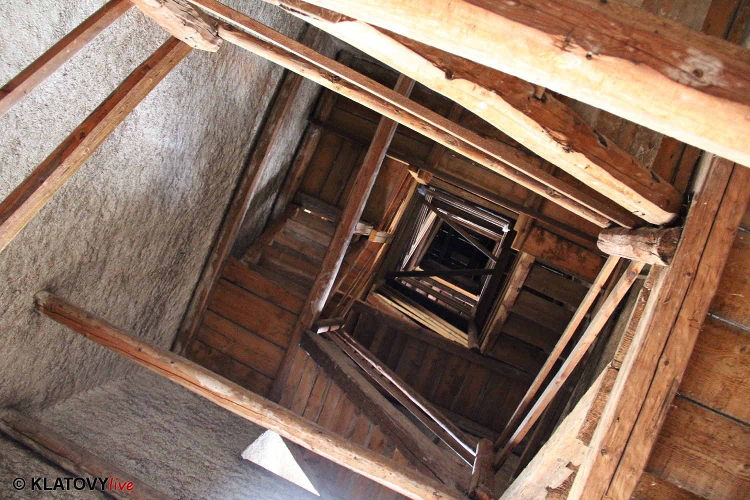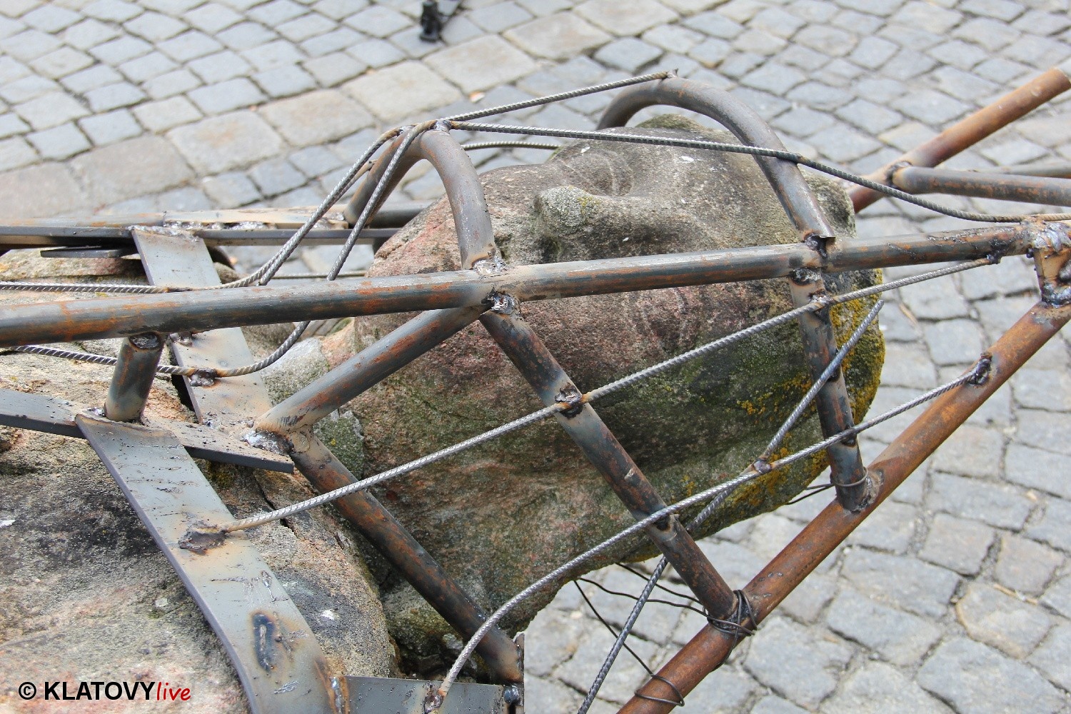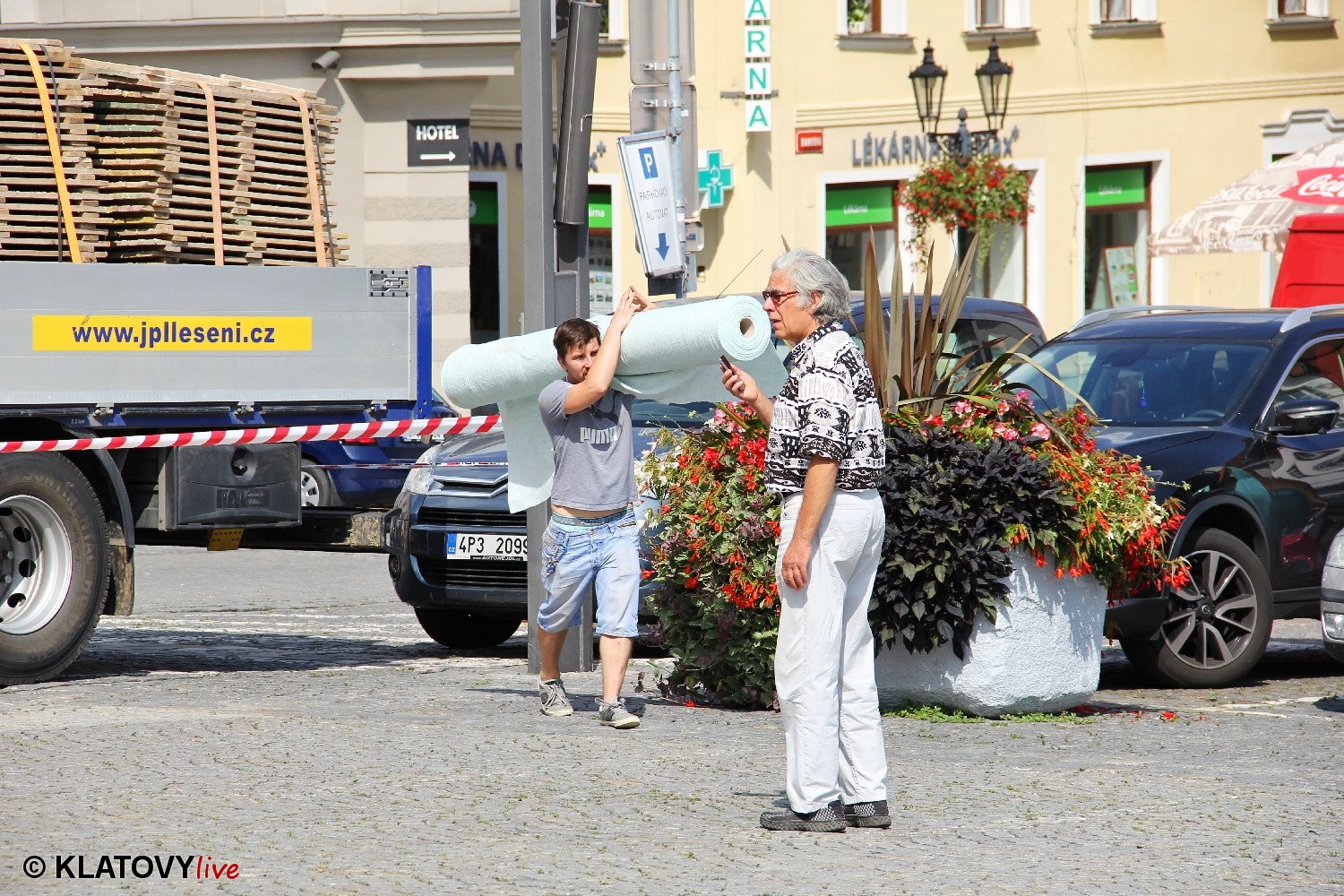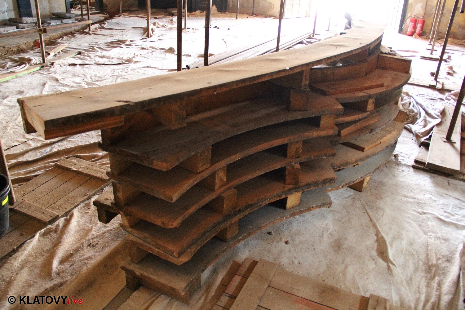 Z průčelí Jezuitského kostela na náměstí Míru v Klatovech byla snesena socha Panny Marie v rámci rekonstrukce kostela. O kompletní rekonstrukci svědčí i fotky lešení v interiéru.